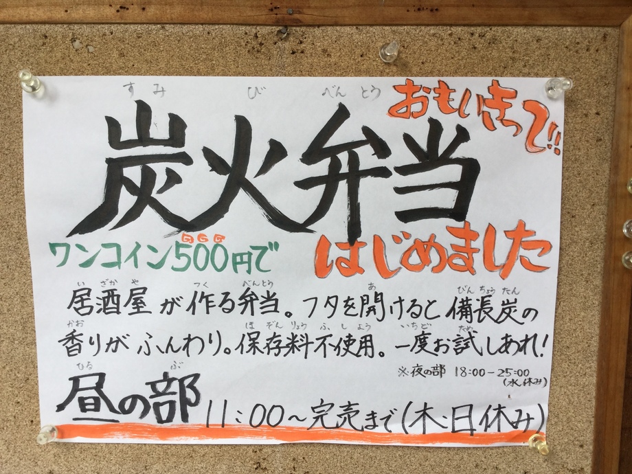 昼竹馬『炭火弁当』の定休日は、木曜、日曜の定休日です。